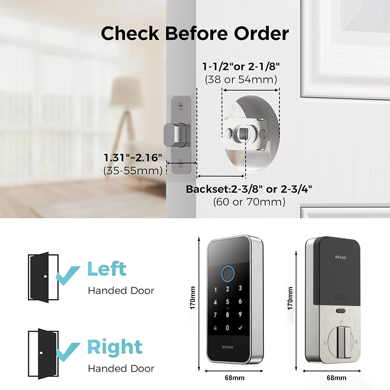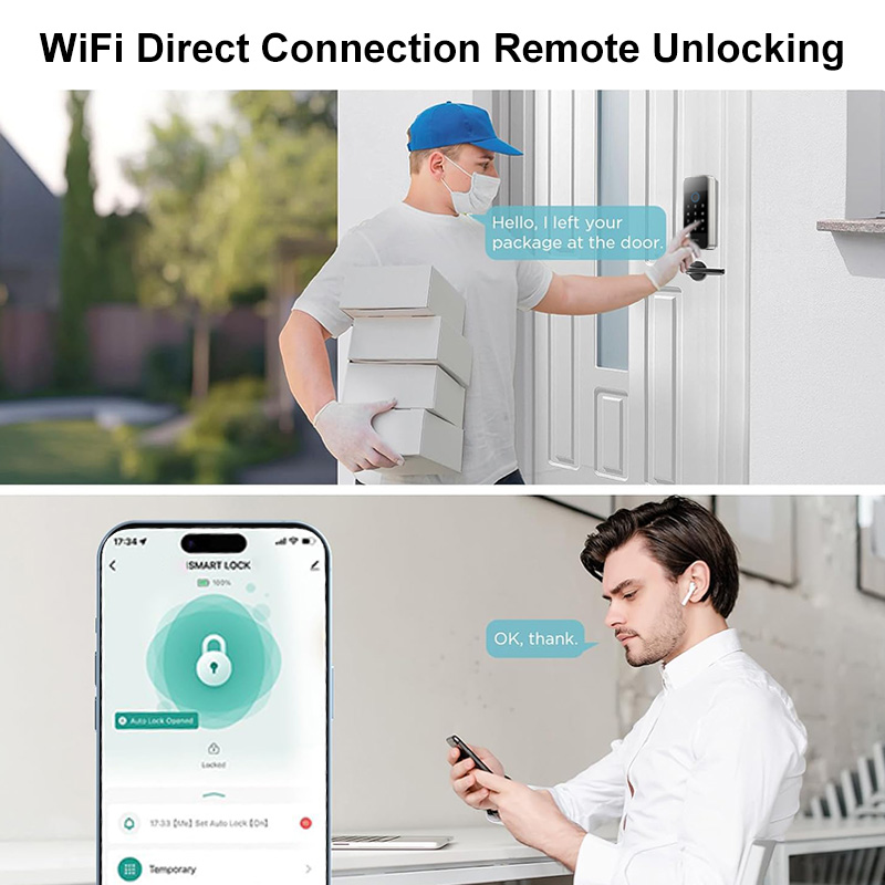 - خيارات متعددة لإلغاء القفل: اختر طريقك في بصمة الإصبع أو رمز PIN أو التحقق المزدوج أو الرمز المؤقت أو إلغاء القفل عن بعد عبر تطبيق Tuya.