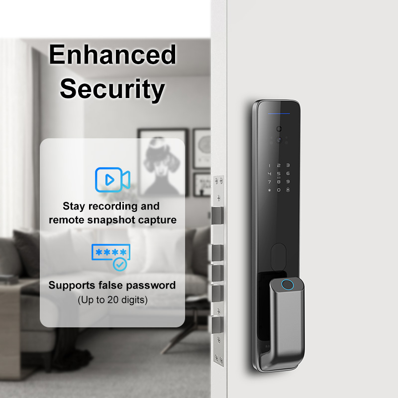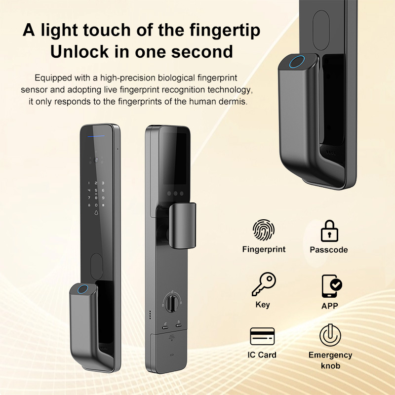 - Multiple Unlocking Methods: ✔ Fingerprint ✔ PIN Code ✔ RFID Card ✔ Mechanical Key ✔ Temporary Password ✔ Tuya App Remote Unlock ✔ Dual Authentication (e.g. Password + Fingerprint) ✔ One-Grip Fast Handle Access